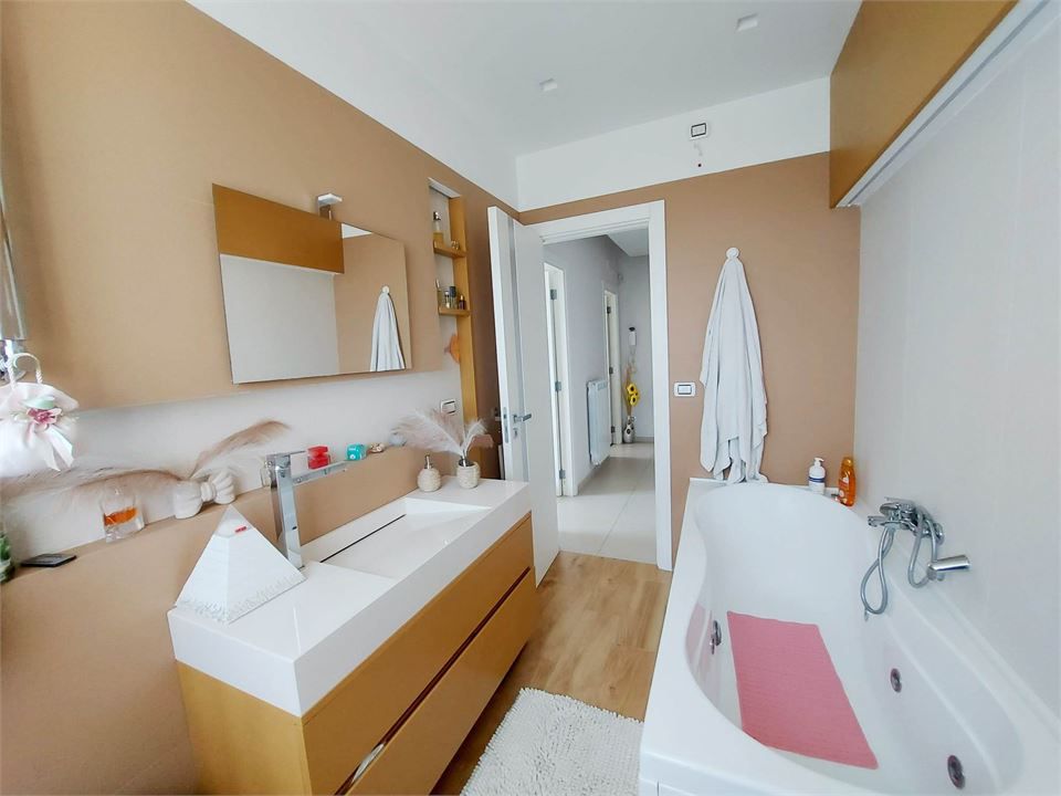 La soluzione si completa con la presenza di un box auto di circa 25 mq presente al piano seminterrato raggiungibile direttamente con ascensore ed un posto auto assegnato presente nel cortile condominiale.